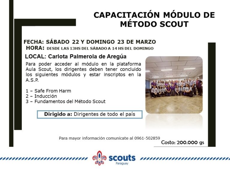 La Asociación de Scouts del Paraguay, a través de la Dirección de Adultos en el Movimiento Scout, organiza la capacitación…